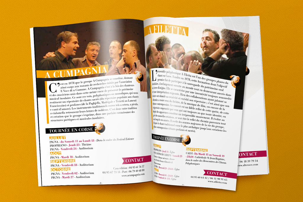 Concevoir l’agenda estival des tournées musicales des chanteurs, groupes et musiciens de l’île pour la Collectivité Territoriale de Corse